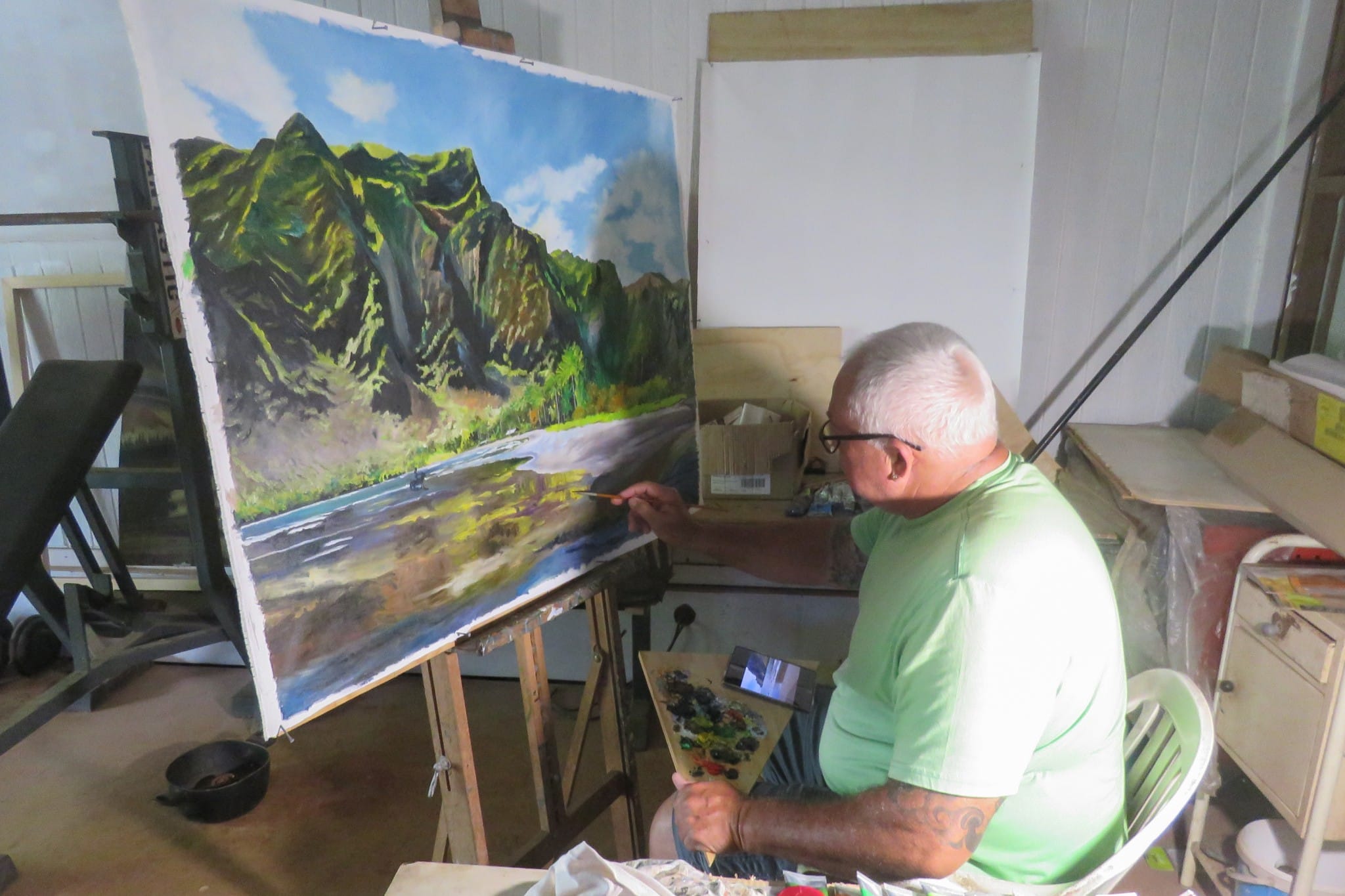 « J’ai peint à Moorea, par exemple dans la vallée de Paopao ou dans la vallée d’Opunohu. J’ai aussi peint dans d’autres îles, comme Bora Bora, les Tuamotu ou les Marquises. Ces dernières m’ont particulièrement marqué : c’est un endroit unique, puissant, magnifique. J’ai vendu tous les tableaux que j’y ai peints. »