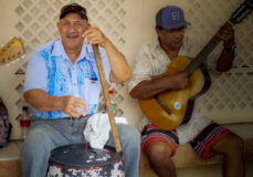 Taimanu se souvient d’avoir appris à piquer le pandanus dès l’âge de 8 ans auprès de ses parents qui continuent d’exercer cette activité à ses côtés. Désirant rester vivre sur son île, lui-même s’est orienté vers ce travail dès la fin du collège. En témoignent ses mains tannées comme du cuir et la pulpe dure de ses doigts.