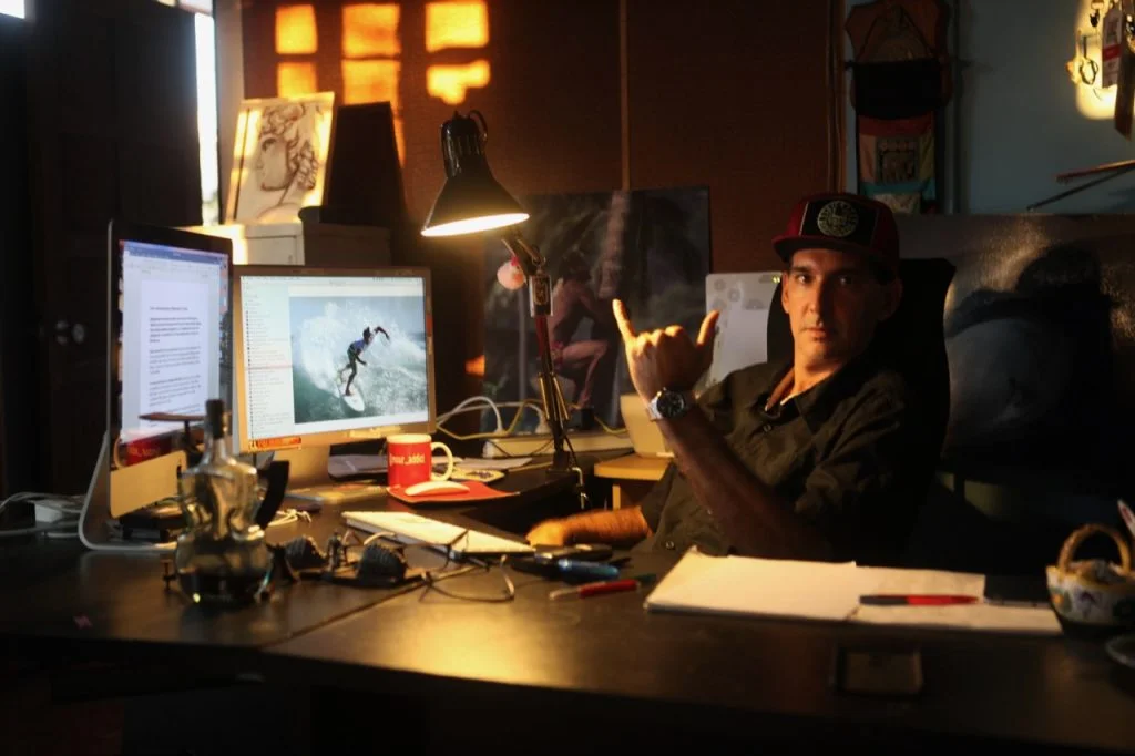 « J’ai voué une véritable passion pour la vague de Teahupo’o que j’ai filmée puis photographiée dès 1997 pendant des années, à mon retour de Paris, avec deux films de surf à la clé…»
