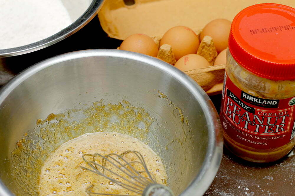 Ajouter le beurre de cacahuète et la vanille. Bien mélanger avec une spatule.