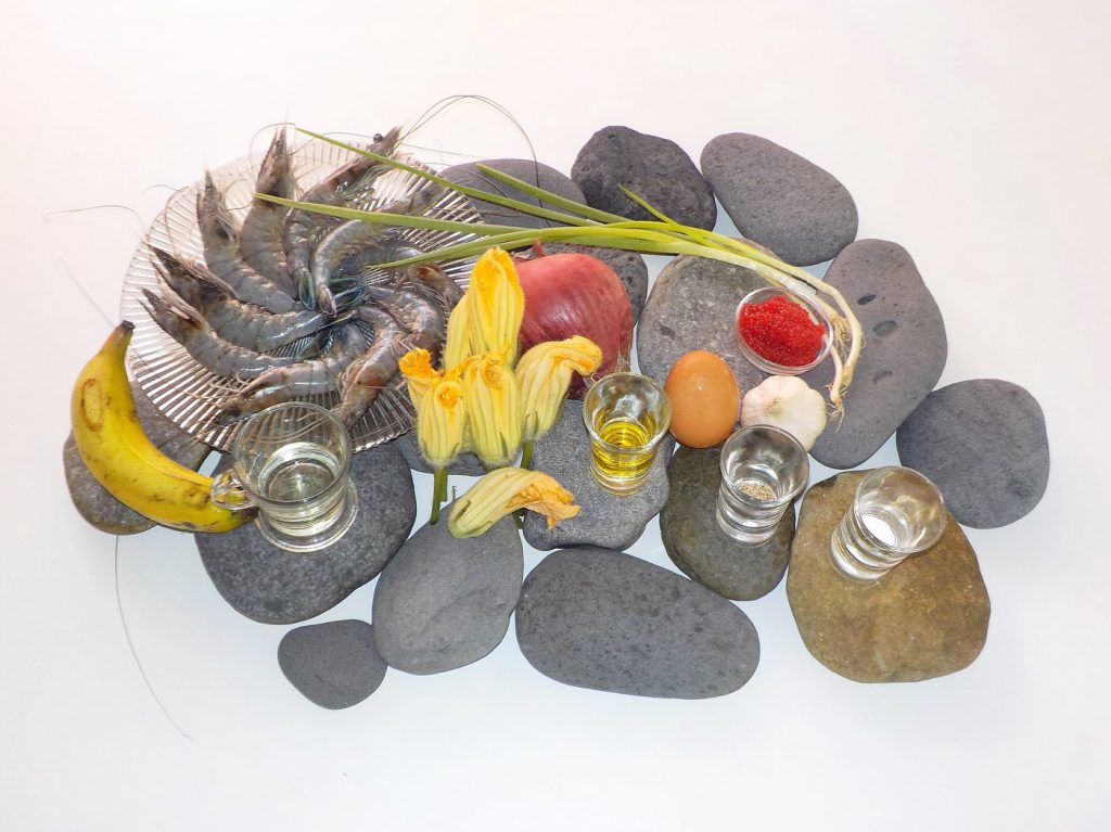 Recette : farce de crevettes sur son drapé de fleurs de potiron