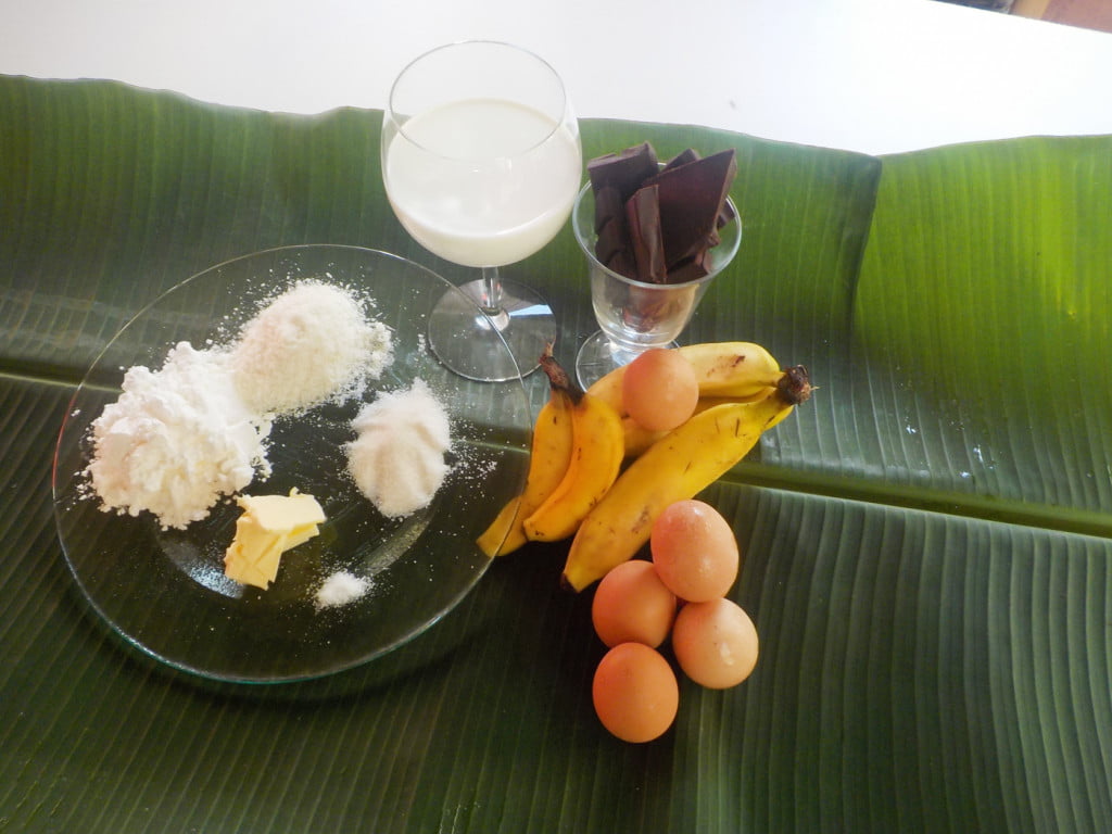 - Dans une casserole, faire fondre le beurre avec le chocolat. Verser le coco, la maïzena, la levure, le lait et ajouter les bananes écrasées. Utiliser un fouet pour remuer afin d’obtenir un mélange sans grumeau puis laisser refroidir.